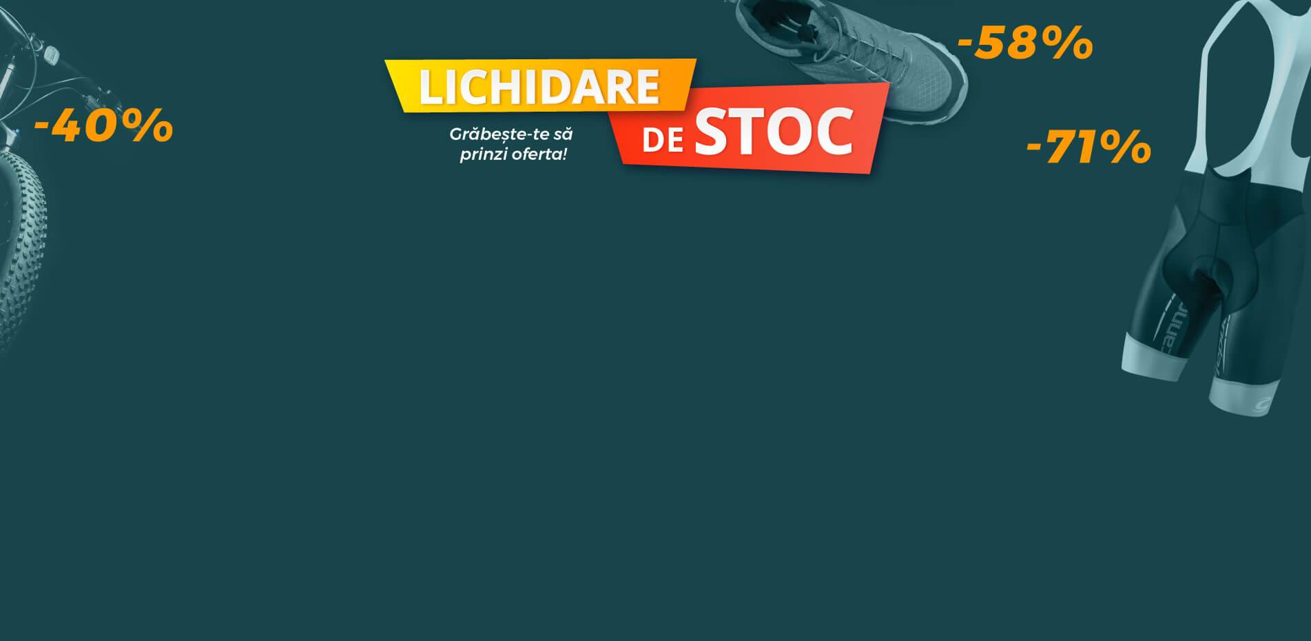 Lichidare de stoc la o gama larga de produse. Cele mai bune preturi la o selectie de biciclete, imbracaminte si incaltaminte de alergare, echipament pentru drumetie, ceasuri multisport si multe altele.